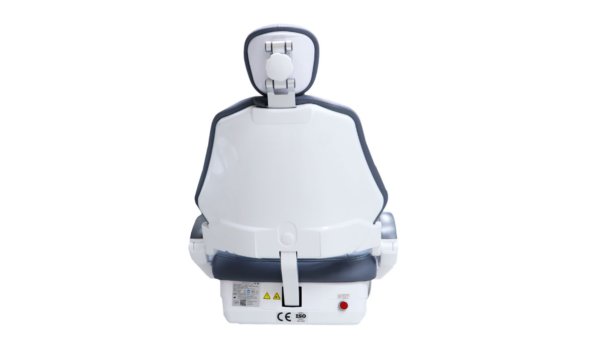 Respaldo estrecho de la silla, relleno con espuma de memoria de rebote lento y espesor moderado, diseñado para ofrecer una sensación envolvente cuando el paciente se encuentra en posición supina. Proporciona una experiencia cómoda, estable y segura, especialmente durante tratamientos prolongados.