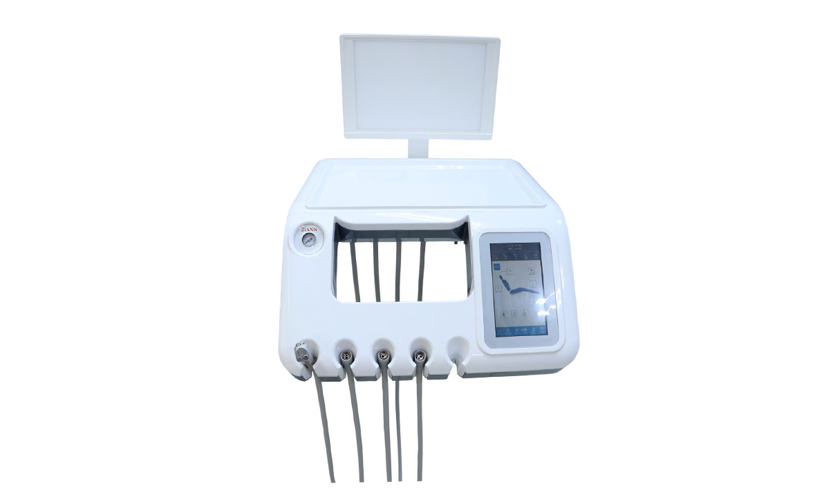 Bandeja auxiliar para operación a cuatro manos, diseñada para optimizar el trabajo coordinado entre operador y asistente. Incorpora panel multifuncional, que permite un acceso rápido a los controles y mejora la eficiencia del asistente durante los procedimientos clínicos.