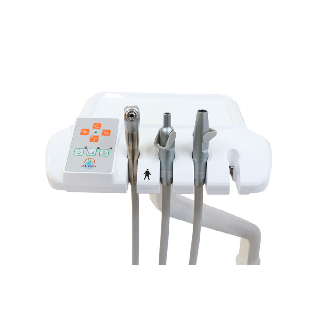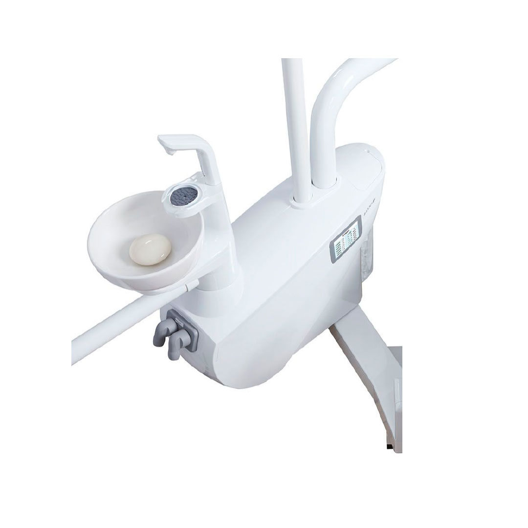Su lámpara LED ajustable, escupidera móvil de porcelana y pedal multifuncional mejoran la eficiencia del odontólogo, mientras que su sistema de succión, lavado automático y nueve memorias programables hacen el trabajo más ágil. Ideal para clínicas que buscan versatilidad, confort y tecnología de punta.